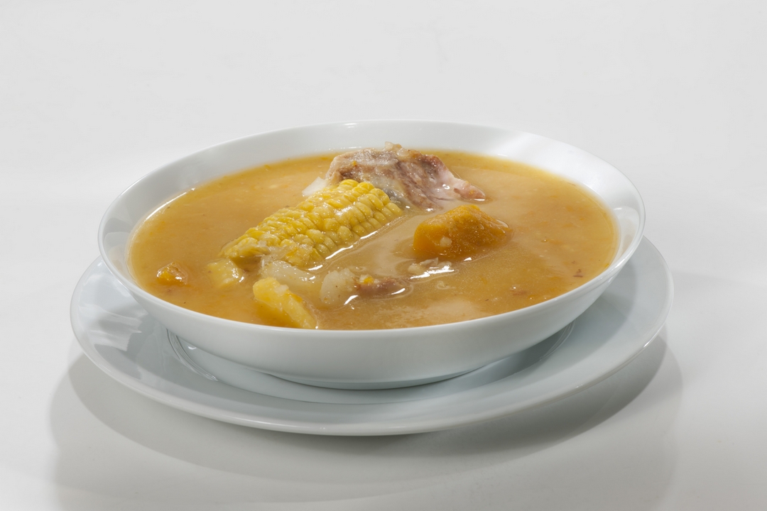 - Cuando los víveres estén blandos sacamos la sepa de apio, la licuamos y volvemos a agregarla; esto dará más consistencia y color a nuestro sancocho.