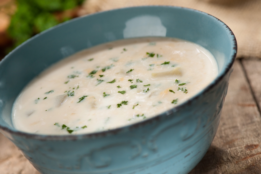 - En la misma olla añadimos la fécula de maíz, sofreímos y agregamos el caldo y la crema.