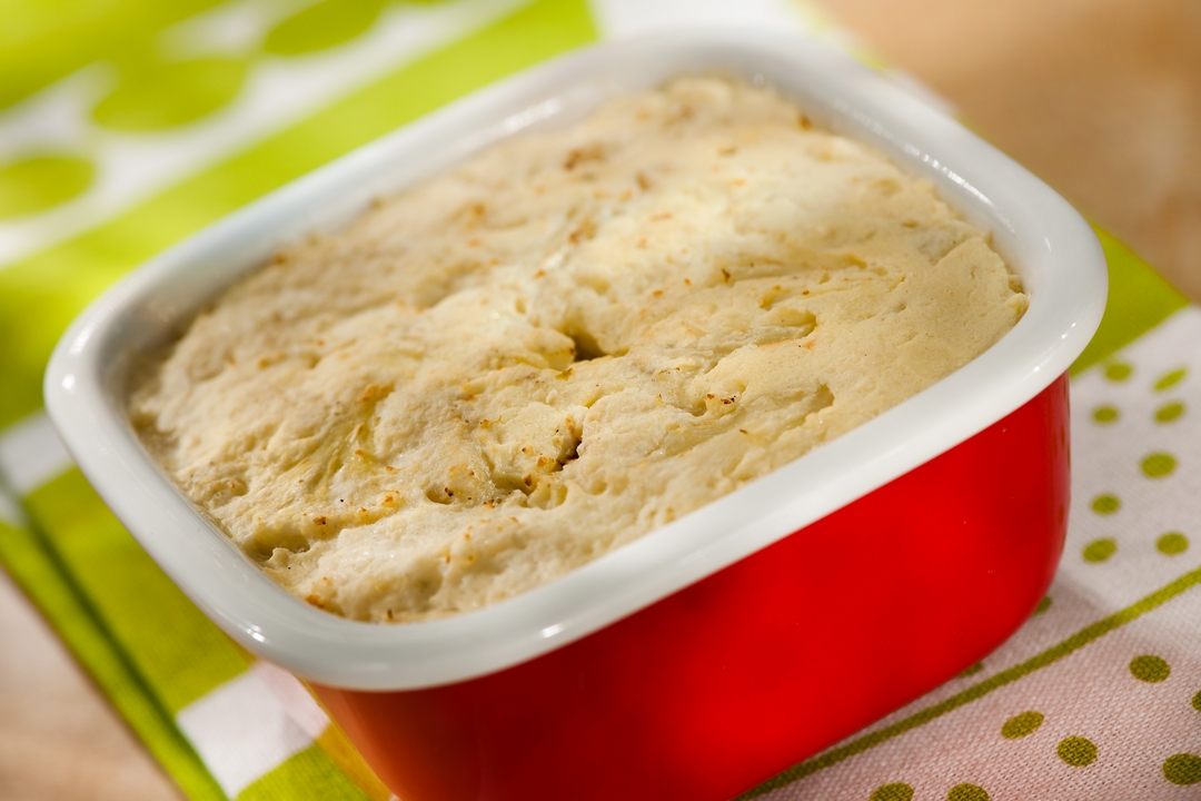 Colocamos en un molde engrasado y enharinado, y llevamos al horno en baño de maría a 180ºC por 1 hora, o hasta que al introducir un cuchillo este salga limpio.
