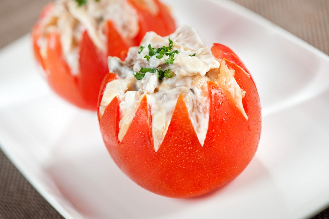 Tomates rellenos de bacalao Categoría Pescados y mariscos Dificultad Fácil Porciones 7 Ingredientes 7 onzas de bacalao desmenuzado y desalado 7 tomates Aceite de oliva 5 hojas de espinaca 1 cucharada de miel 1 atado de perejil 2 cucharadas de mayonesa light Sal y pimienta al gusto Preparación Limpiamos los tomates cortándoles la parte de arriba y sacando todo del interior. Mezclamos el bacalao desmenuzado y totalmente desalado con aceite de oliva, miel, mayonesa, las hojas de espinaca picaditas, el perejil picadito, sal y pimienta. Rellenamos los tomates con esta mezcla. Llevamos al horno a 185ºC por 15 minutos.