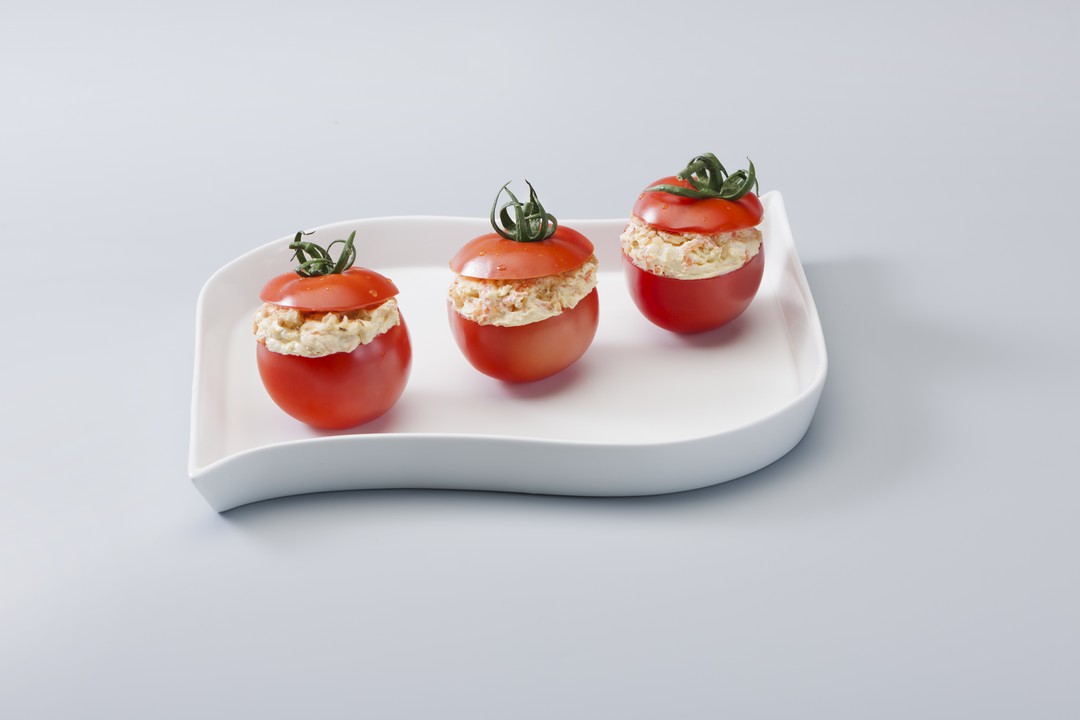 Le cortamos la tapa de arriba a los tomates, removemos el centro y las semillas, y ahuecamos el tomate. Reservamos.