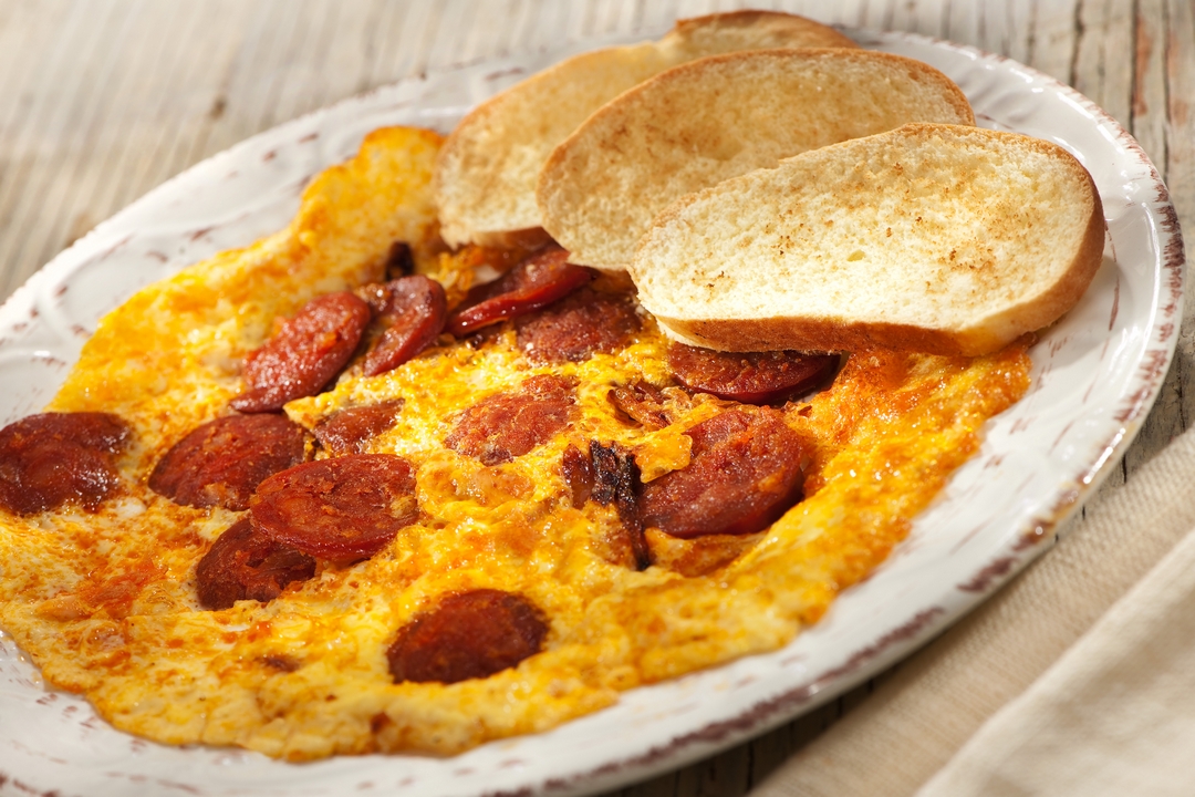 - Aparte, freímos los chorizos con un poco de aceite de oliva y los agregamos a las papas con los huevos.